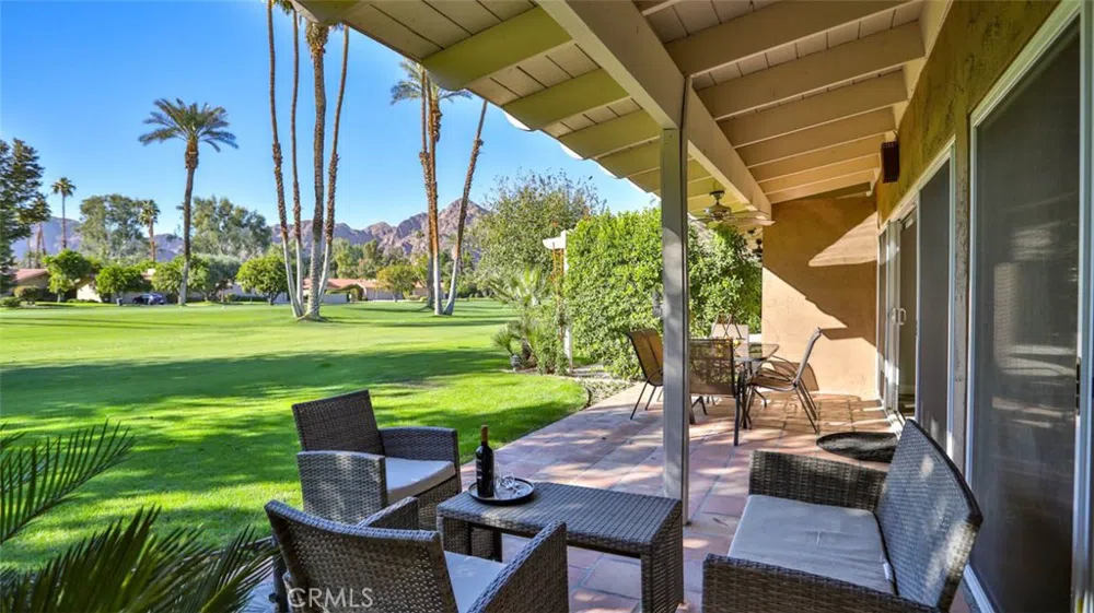 FURNISHED RENTAL - 30-day min. - Available now thru end of 2025 and for 2026 available 3/1/26++ (rates posted below) - Turnkey, short-term, furnished rental with plenty of space for all, this charming vacation home offers a host of features to ensure you have a fantastic stay! Inside, prepare meals in the well-equipped, full kitchen with stainless steel appliances and an island with counter seating and don't miss the built-in wine cooler. Dine together (or play a few board games) at the table for six. And then wrap up your evenings with a movie or your favorite TV show on the 65" flat-screen TV located in the spacious living room. Outside, relax on your furnished, west-facing patio, or take advantage of the on-site amenities in this gated community including a shared pool and spa located just down the street. Nearby you'll find abundant recreation opportunities in the beautiful city of La Quinta including a number of public parks that offer tennis courts, bocce ball courts, and workout/sauna facilities. You'll also find hiking and biking trails as well as casual walking options in Old Town La Quinta. Downtown is also the place to be for shops, restaurants, farmer's markets and several golf courses, so don't forget to pack your clubs! Sleeps 8: Primary bedroom is a king, 2nd bed is a full/queen, 3rd bed is 2 twins and sleeper sofa. Each bedroom has a glass slider to an outdoor area. RATES: Jan-March $4,500 mo. April (Festival) $6,500 mo. June-Dec. $4,500 mo. (+cleaning fee $325 & deposits)